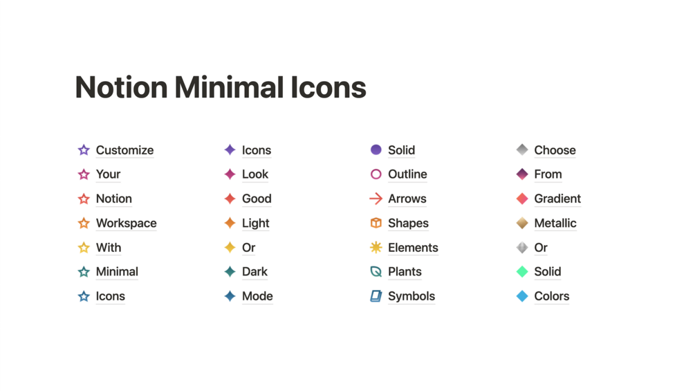 Credit for the OG Minimal Icons set goes to NotionPages.com (available for free). I simply jazzed them up a bit and wanted to share with the world.Â